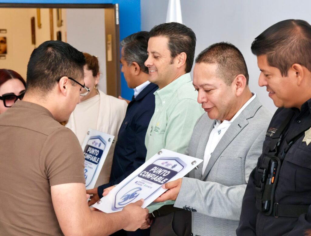 San Andrés Cholula, Puebla. – Con el objetivo de reducir riesgos delictivos y promover entornos más seguros en establecimientos comerciales, la presidenta Lupita Cuautle Torres, entregó el distintivo “Punto Confiable” a 25 comercios del municipio. Iniciativa implementada por la Secretaría de Seguridad Pública y Protección Ciudadana (SSPPC).